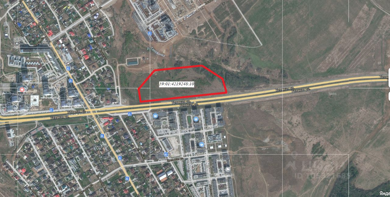 Участок находится на ул. Уинской, 55, недалеко от ЖК «Погода». Согласно опубликованной информации, объект находится в зоне обслуживания и деловой активности местного населения Ц-2. На его территории разрешено строительство магазинов, торгового комплекса, а также возможна среднеэтажная жилая застройка.