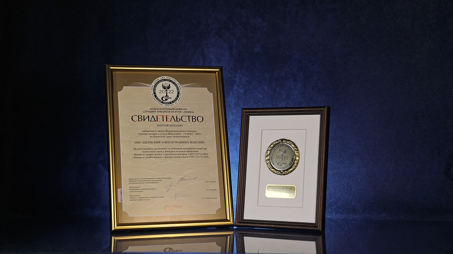 ООО «Пермский завод бумажных изделий» получило золотую медаль в отборочном этапе межрегионального конкурса «Лучшие товары и услуги Приволжья ГЕММА-2022».
