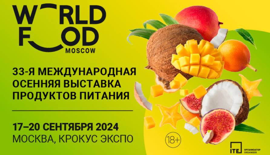 С 17 по 20 сентября в МВЦ «Крокус Экспо» (павильон 3, залы 14 и 15) пройдет выставка WorldFood Moscow 2024.