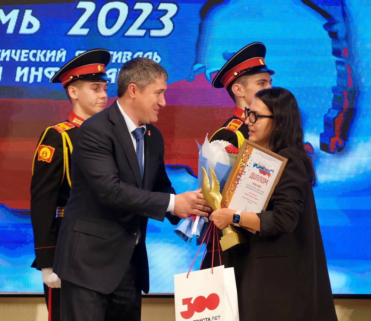 Губернатор Пермского края Дмитрий Махонин вручил Гран-при журналистского конкурса на лучшее освещение военно-патриотической темы «Щит России» дир