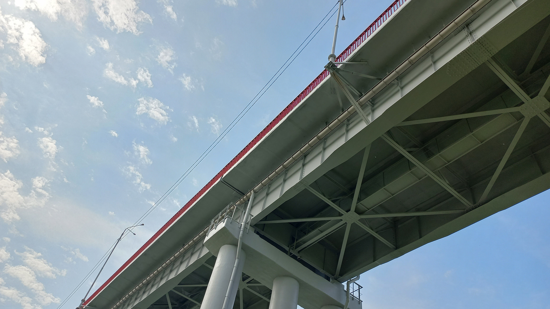 Отметим, мост был построен в 1998 году и с тех пор ни разу не ремонтировался, в том числе из-за его особенностей — он не только длинный, но ещё и высокий. Работы были начаты в 2022 году, подрядчиком выступило ООО «Универсал-Строй». В ходе ремонта были заменены некоторые подферменники на опорах, отремонтированы деформационные швы, заменено дорожное полотно и отремонтированы тротуары. На протяжении всего моста были заменены опоры и светильники наружного освещения. Также для соблюдения норм экологической безопасности на откосах и возле опор были обустроены локальные очистные сооружения, благодаря чему дождевые стоки с моста проходят через специальные фильтры и выводятся в слив уже в очищенном виде.