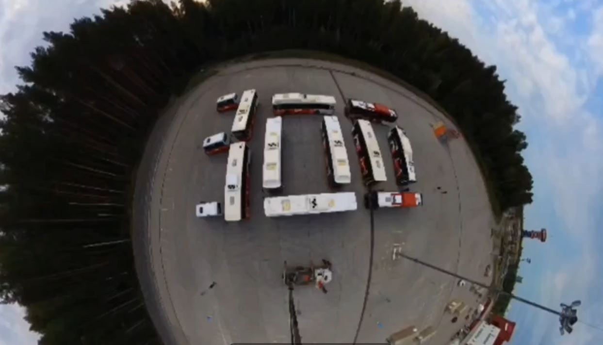 В честь юбилея города в Перми автобусы выстроились в цифру 300