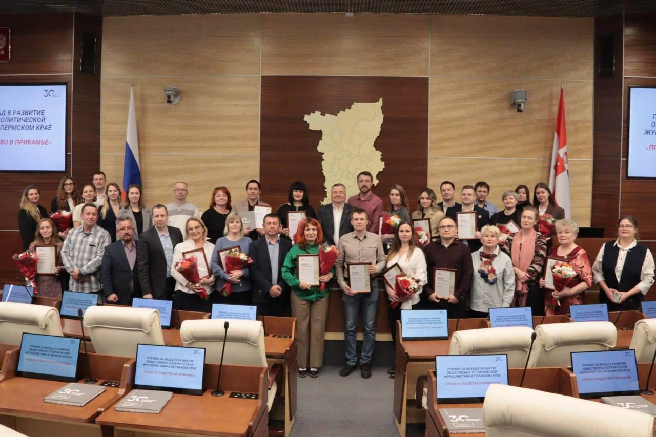 На площадке законодательного собрания Пермского края 16 мая состоялась шестая церемония награждения лауреатов ежегодной премии за вклад в развитие общественно-политической журналистики в Пермском крае «Право и общество в Прикамье». Премия учреждена парламентом для представителей региональных СМИ.