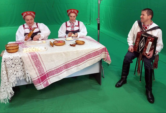 Артистки вокальной группы, хормейстер Ольга Забоева и артистка хора Елена Бушуеа искусно лепили пельмени под исполнение стариной коми-пермяцкой песни «Чужи быдми», рассказывали про обряды, пели частушки под гармошку. Аккомпанировал вокальной группе гармонист Анатолий Полуянов.