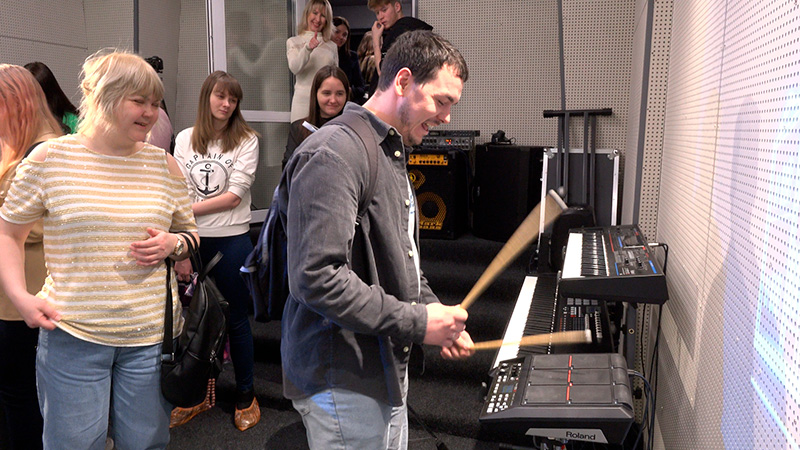Студентам была предоставлена возможность ознакомиться с работой Центра саунд-дизайна и визуальных технологий ПГИК (далее – Центр). Все желающие с помощью специалистов Центра смогли протестировать технические возможности инновационной площадки. Студенты ПГИК приняли участие в записи видеоролика Алексея Леонидовича Черникова, в котором он поздравил студенчество Перми и Пермского края.