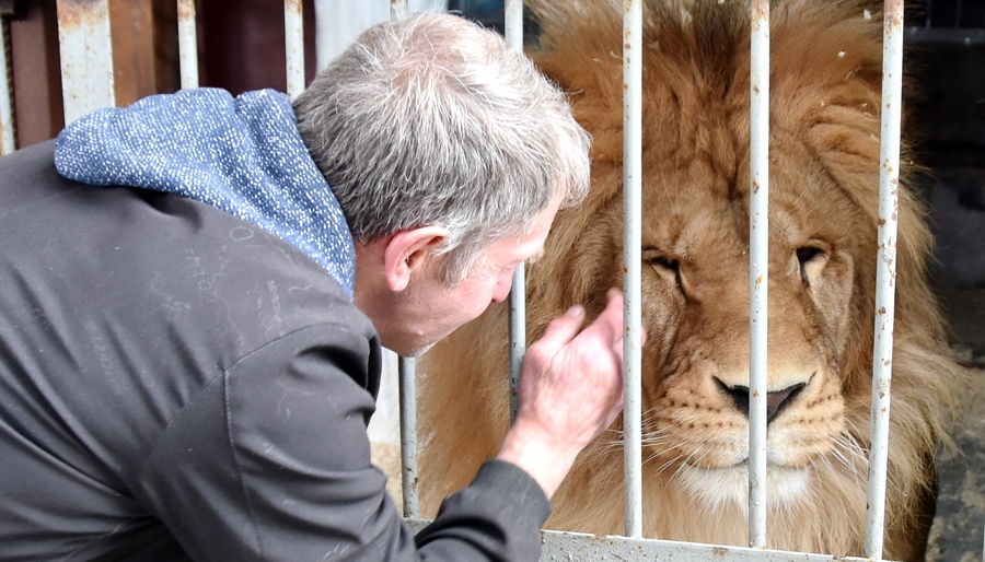 В сопровождении гостя хозяин шагает по хлопотному хозяйству. В просторном, хотя и старом, но добротном кирпичном здании №101 по улице Калинина, в котором лет двадцать назад размещался продуктовый магазин, со знанием дела обустроены места обитания для двух бурых медведей, грозного вида льва и молчаливо-скромной енотовидной собаки, весьма нехуденькой от щедрых хозяйских харчей.