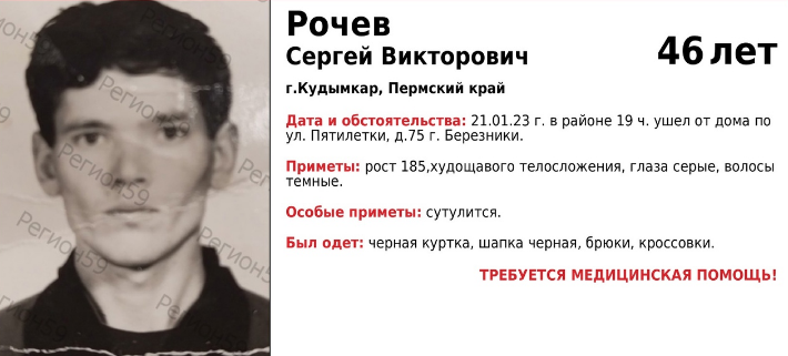В Пермском крае волонтёры поискового отряда «Регион 59» объявили в розыск 46-летнего Сергея Рочева из Березников.