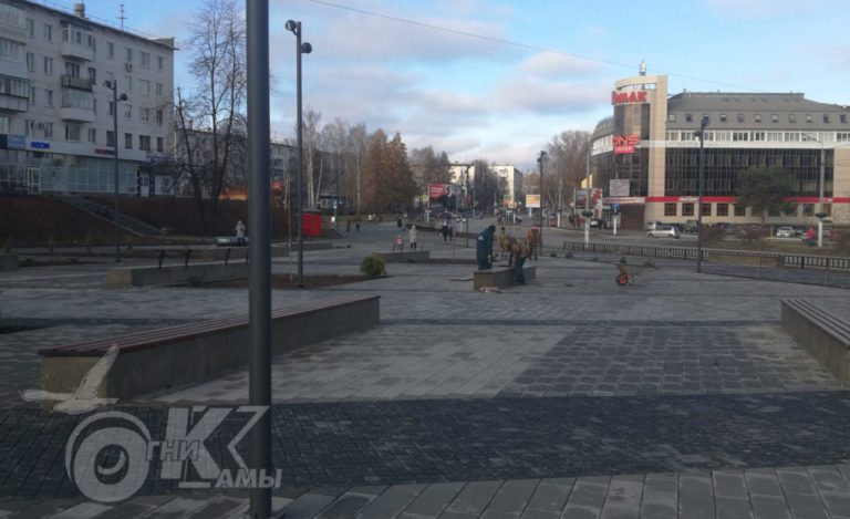 На сегодняшний день убран забор огораживающий стройку и теперь жители города могут созерцать всю территорию и даже прогуливаться по ней. Работы здесь не прекращаются даже в выходные дни и вечернее время. Строители установили металлические ограждения вдоль проезжей части, заканчивают укладку тротуарной плитки, демонтируют скамейки, приведены в соответствующий вид лестничные марши в двум домам, расположенным напротив площади.