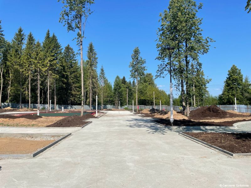 В ближайшее время подрядчик приступит к установке малых архитектурных форм. Кроме того, уже получено разрешение на обустройство пешеходного тротуара от улицы Корсуньской до угла ДК «Бумажник», находящегося на улице Евгения Пузырева. Это позволит обезопасить посетителей сквера от потока автотранспорта, ограничив возможность съезда автомобилей на обочину. Также продолжается подготовка к озеленению сквера. Здесь будут высажены молодые ели, пихты, клёны, мелколистные липы, яблони и берёзы, из кустарников – можжевельник трёх видов, туя, дерен сибирский, смородина золотистая, спирея серая и другие.