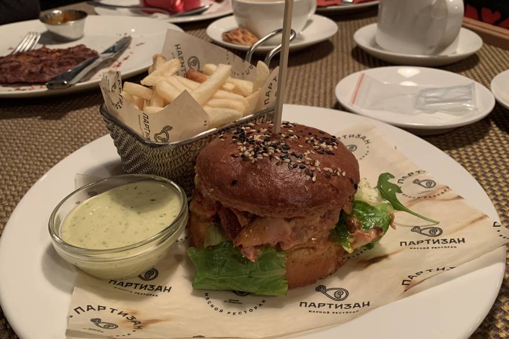 «Партизан» специализируется на мясных блюдах. В новом помещении расположены три зала в разной тематике, один из которых – винный с видом на Комсомольский проспект, а на втором этаже – на 100 посадочных мест, рассчитанный на проведение массовых мероприятий.Последние новости