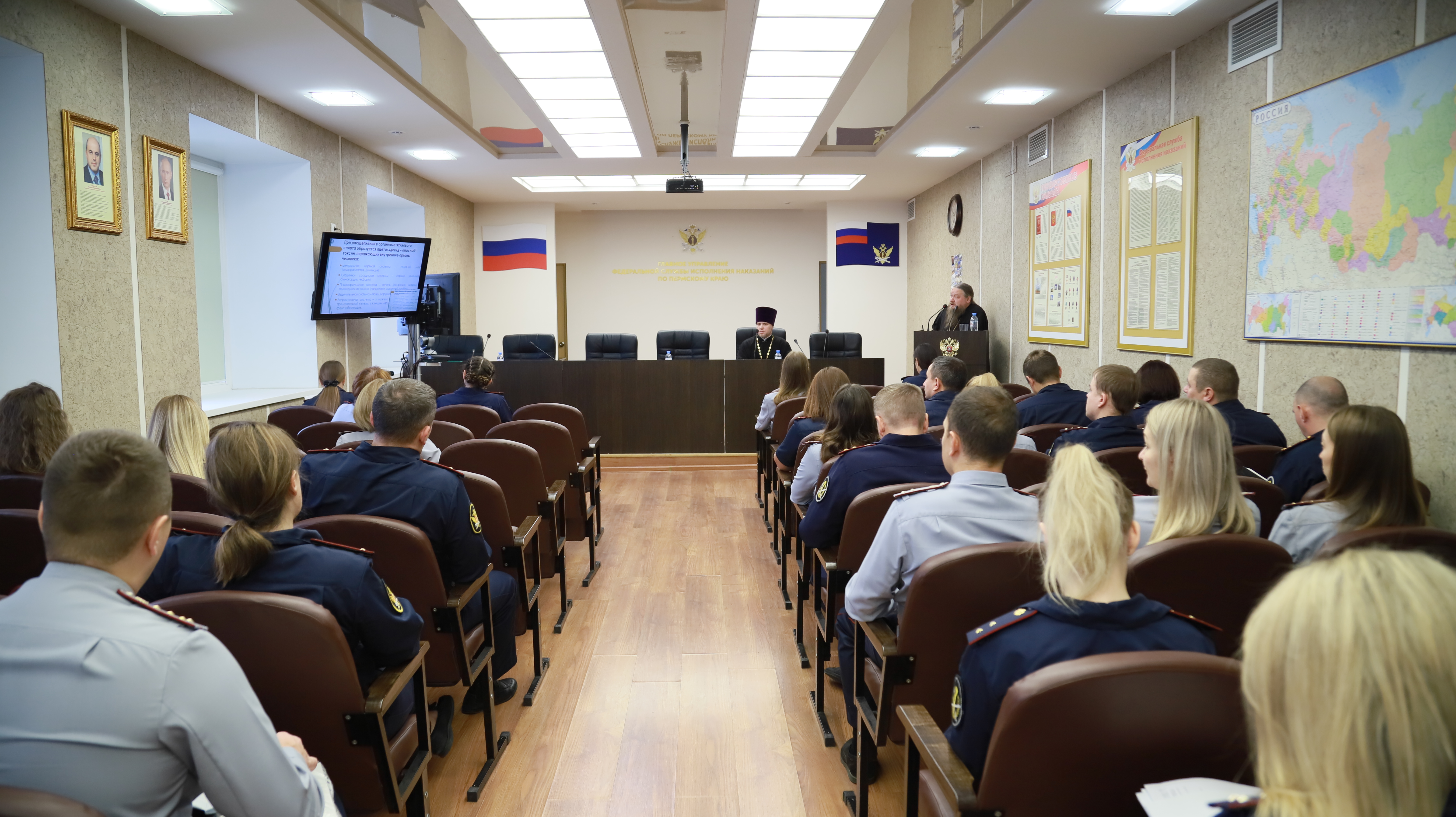В рамках служебной профессиональной подготовки для сотрудников Главного управления организовали профилактическую беседу с участием священнослужителей и представителей Совета ветеранов УИС на тему «О недопущении злоупотребления алкоголя и категорическом запрете запрещенных препаратов».