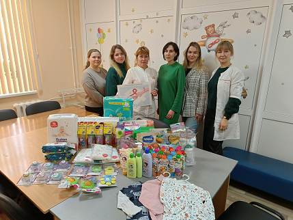 13 декабря 2023г., студенты 6 курса медико-профилактического факультета Кауфман Элина, Зуева Анна, Ушакова Александра во главе активного организатора Алыевой Майи Хаджамурадовны, передали в дар детские вещи, бутылочки с сосками, средства личной гигиены, детское питание и игрушки. Таким подаркам родители малышей очень рады и всегда их ждут. Полученная гуманитарная помощь будет оказана нуждающимся семьям.