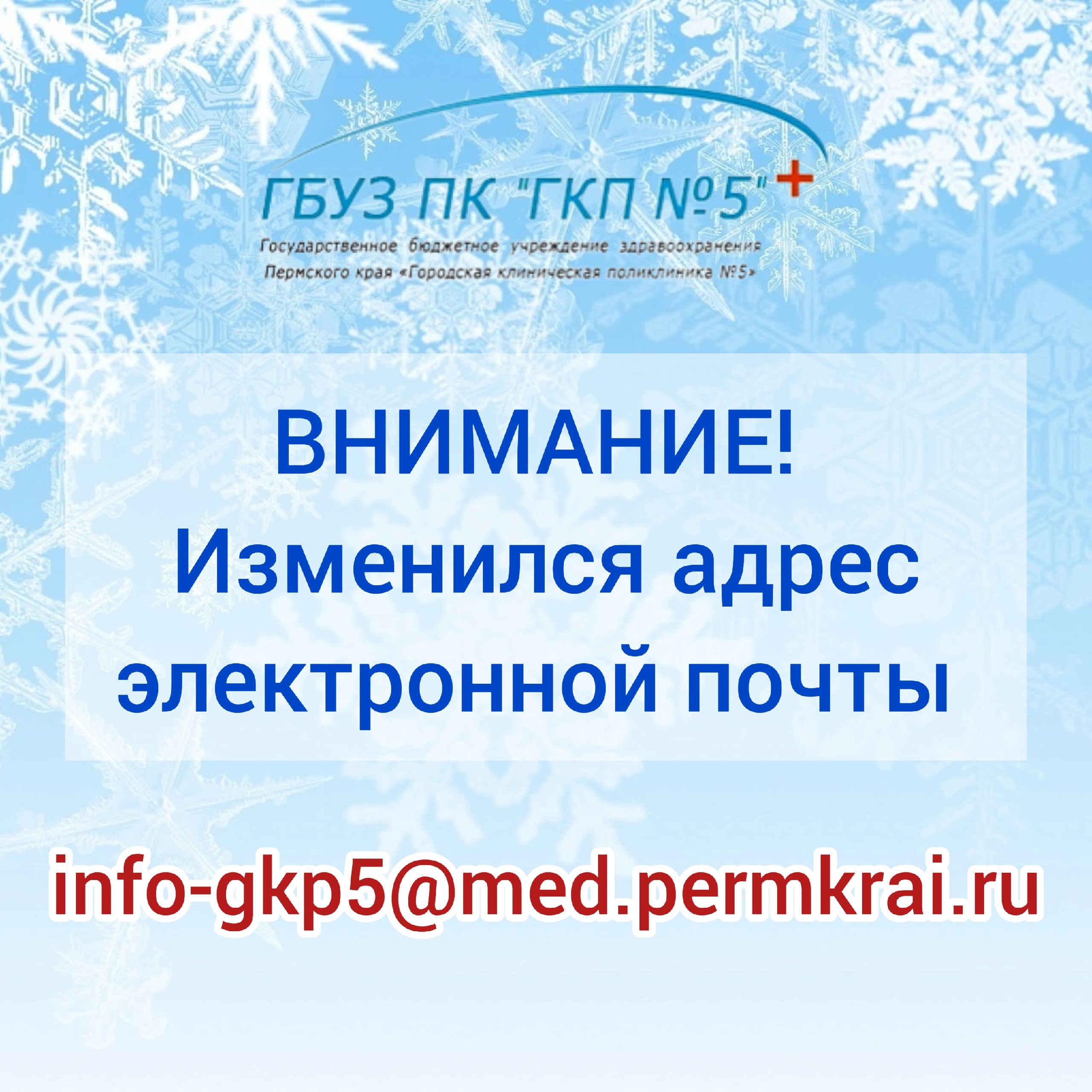 Внимание! Изменился официальный адрес электронной почты поликлиники!