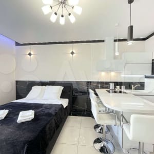 Студия в новом доме, с новым ремонтом, ЖК "Меланж". Полностью укомплектована новой мебелью и бытовой техникой. Кровать 160х200 с ортопедическим матрасом и мягким изголовьем.