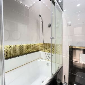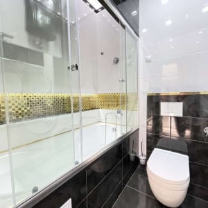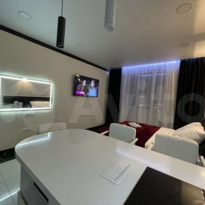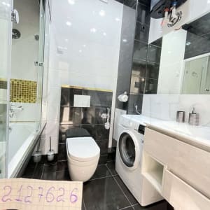 Большой ЖК ТВ 55 дюймов, SMART, WI-FI, кабельное ТВ. Стиральная машина, утюг, гладильная доска, сушилка, фен, СВЧ - печь. Большая ванна 180 см с цветной подсветкой, тропическим душем.