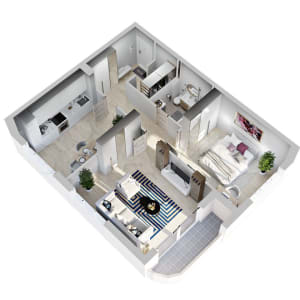 Функциональная 2-комнатная квартира. Предусмотрены: места под шкафы и гардеробная, 2 сан.узла, розетки для стиральной машины в сан.узле.