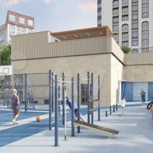 -Воркаут-зона, площадка для стритбола и уличный скалодром