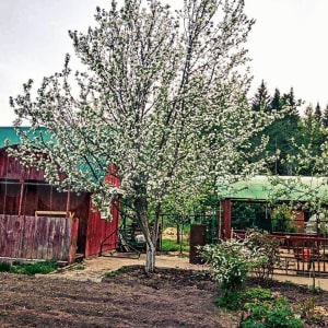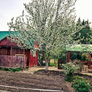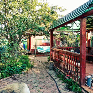 Имеется баня, летний домик, вольер для животных.